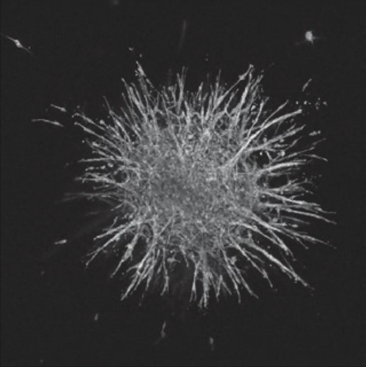 Fig. 4. 2D-derived morphological subclass predicts 3D spheroid invasiveness. (A) Spheroid shape and invasiveness are measured from projected, binarized, z-stacks. (B) Representative images of spheroids generated from parental and clonal lineages embedded in a 3D collagen gel show vast differences in cell migratory phenotype. F-actin (magenta, peripheral) and DNA (cyan, central) are labeled. Scale bar is 200 microns. (C and D) We compare the 3D shape and invasive behavior of subclass representative clones. Significant differences between spheroid shape (area, circularity) and invasion (protrusion and disseminated cell dynamics) exist between populations across subclasses. (*, **, ***, **** correspond to P < 0.05, 0.01, 0.001, 0.0001, respectively). (E and F) Repeating the hierarchical clustering from earlier now including 3D spheroid parameters alongside 2D cell shape and network topology parameters reiterates the clustering obtained from only 2D parameters.